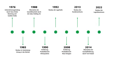 Gegründet im Jahr 1976 durch Hans Dieter Remming und Günther Krähe, hat sich unser Unternehmen seitdem kontinuierlich in der Branche für Wärme-, Lüftungs- und Klimaanlagen etabliert. Der Umzug in unsere neue Betriebsstätte "Am Seelenkamp" im Jahr 1983 war ein erster bedeutender Schritt in unserer Firmengeschichte.