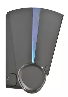 • Anthrazitfarbiges Design-Gehäuse mit Echtglas-Spiegelfront