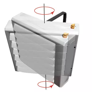 Ein ausgeklügeltes Montagesystem sorgt dafür, dass neben der Wand- oder Deckenmontage auch eine um 30° geneigte Montage möglich ist. Der Montagebügel am Gerät selbst kann weiterhin um bis zu 70° geneigt werden und ermöglicht somit eine Anpassung der Geräte-Ausrichtung an schwierigste Montagebedingungen. Die Konsolen sind serienmäßig im Lieferumfang enthalten. Eine optional einbaubare Kondensatwanne ermöglicht, das Gerät bei einer Wandmontage auch im Kühlbetrieb zu betreiben und bildet somit die ideale Ergänzung zur Sicherstellung des Behaglichkeitsbereiches.
